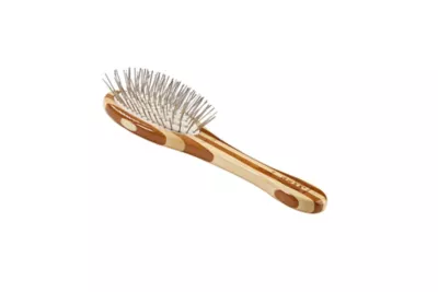 Bass Style & Detangle Pet Brush, 100% Premium Alloy Pin, Pure Bamboo Handle, Small, Oval, Striped Finish, A8 – SB