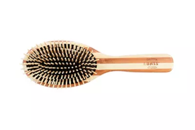 Bass The Green Brush Style & Detangle Pet Brush, 100% Premium Bamboo Pin, Pure Bamboo Handle, Large, Oval, Striped Finish, 20P