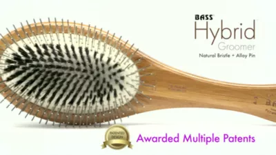 Bass The Hybrid Groomer Shine & Condition Pet Brush, Natural Bristle, Alloy Pin, Pure Bamboo Handle, Dark Finish, A1 – DB