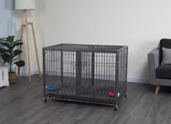 Go Pet Club Heavy-Duty 2-Door Metal Stackable Cat/Dog Crate With Divider And Water Bowls, 44.25 In.