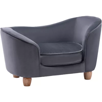 Critter Sitters 28 In. Elegant Faux-Velvet Oval Pet Bed For Small-Sized Dogs And Cats, Gray