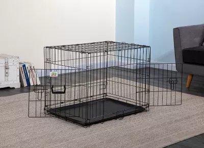 - Folding, suitcase-style crate for dogs