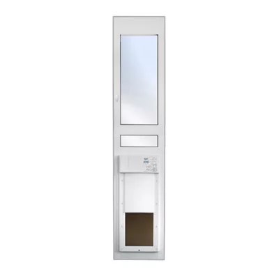 - When your pet approaches, the translucent door panel quickly and quietly powers upward, disappearing into the stylish housing
