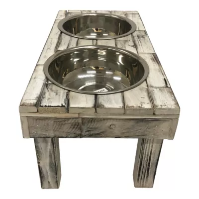 - Promotes pet Wellness: designed and constructed with modern, reclaimed materials to safely hold two stainless bowls, elevated to a comfort height for your pet.