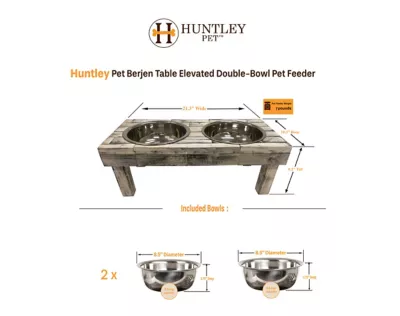Huntley Equestrian Berjen Elevated Wood Double Diner Pet Bowls, 2-Bowls