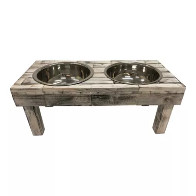- Promotes pet Wellness: designed and constructed with modern, reclaimed materials to safely hold two stainless bowls, elevated to a comfort height for your pet.