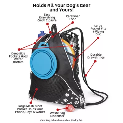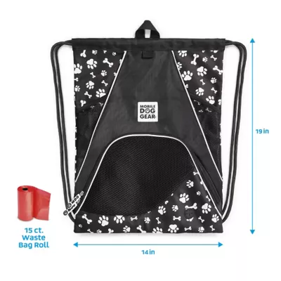 Mobile Dog Gear Dogssentials Travel Drawstring Cinch Sack, Black Paw