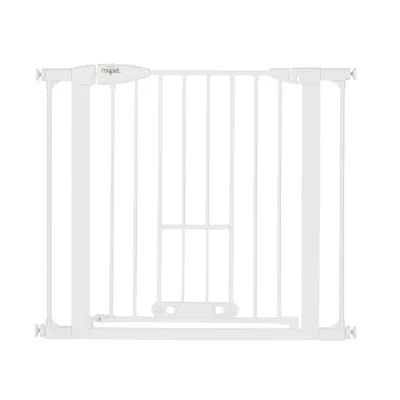 - Unique pet door retracts up into gate tubing. Comes with 3 variable height settings: 5 in., 6.5 in., 8 in.