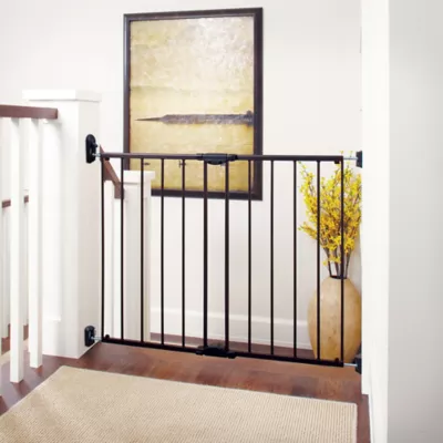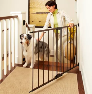 - These wide pet gates have no threshold to step over and will not swing out over stairs