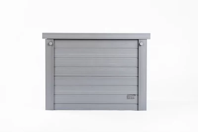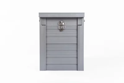 - Lid top slides open and latches closed for storage