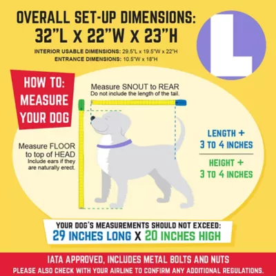 - Your dogs measurements should be under 28 L x 20 H for large kennel