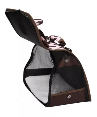 The Pet Life Airline-Approved Folding Zippered Casual Pet Carrier with bottle holder is Pet Life’s most popular of all. This cat or dog carrier zippers all around and folds in half, then uses Velcro to stay in place. This carrier is airline-approved and features a Velcro pouch holder great for snacks and belongings. Next to the pouch is a bottle holder with an adjustable strap located on top. You may carry both through the included over-the-shoulder straps or by the handle. Great for airports, this carrier also contains Thiosulfate thermal heat retention technology inside the included washable Sherpa pad.
