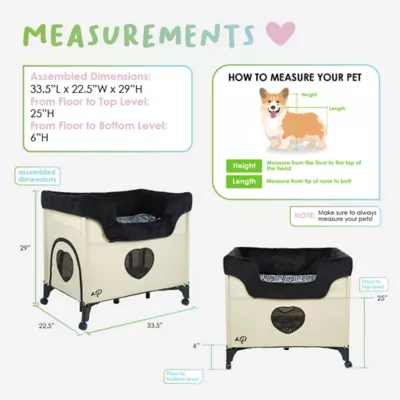 - Two level pet bed (with mattresses) – Bottom level provides the feeling of security with its den-like environment that helps reduce anxiety and stress -Top level allows your pets to comfortably sleep in their own space while being next to you or on the same level, where they can see you