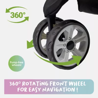 - Two adjustable seat leashes and double rear brakes for optimal safety – 360 Rotating front wheel for a smooth and easy maneuvering
