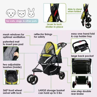 - Easy one-step double rear brake for optimal safety. Front wheel has the options to lock or do a 360 degree swivel for a smooth navigation.