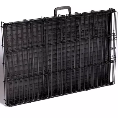 - Lightweight, single door dog travel crate features a non-toxic, durable, powder-coated black finish