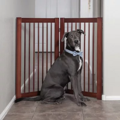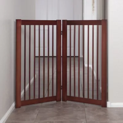 - This wooden pet gate extension kit folds down for easy relocation and storage