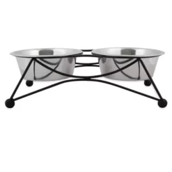 Petmate Elevated Stainless Steel Twin Wire Pet Diner With Bowl, 6.6 Cups, Medium, 2-Bowls
