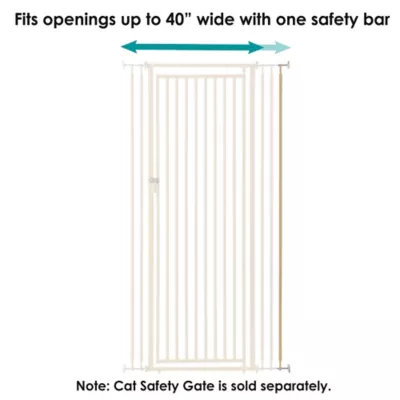The Cat Safety Gate Extra Bar is designed for extra protection and narrows the space between each bar or your wall. Please note that Extra Bars do not physically extend the gate further than the original adjuster bolts allow. The Extra Bars are designed to allow for an opening wider than 37.5″ without compromising the safety of your pets. While the distance between each bar can be adjusted, we highly recommend that the bars are adjusted to be less than 1.8″ from each other to prevent cats from squeezing through the sides of the gate.