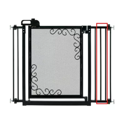 - Two pet gate extensions fit up to 44.5 in. wide
