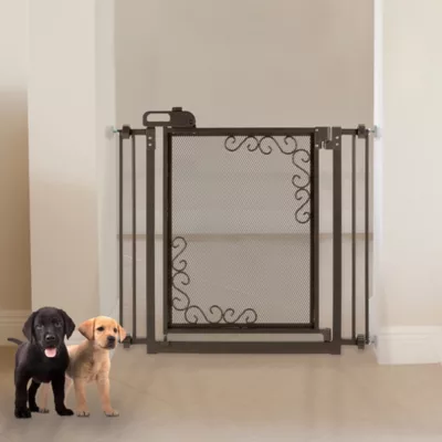 - Pet gate is made of durable metal with an exquisite mesh screen