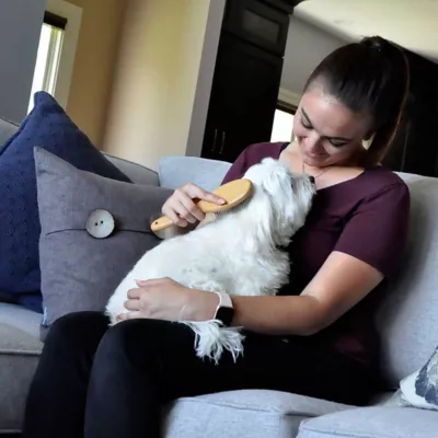 - Short, quick strokes efficiently remove dirt and debris from coat.