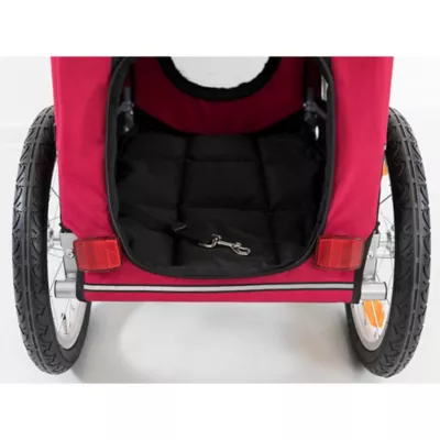 - Designed for Safety This tow-behind pet carrier comes with a safety tether inside the cabin to keep your buddy from getting loose; reflector plates and a signal flag offer better visibility